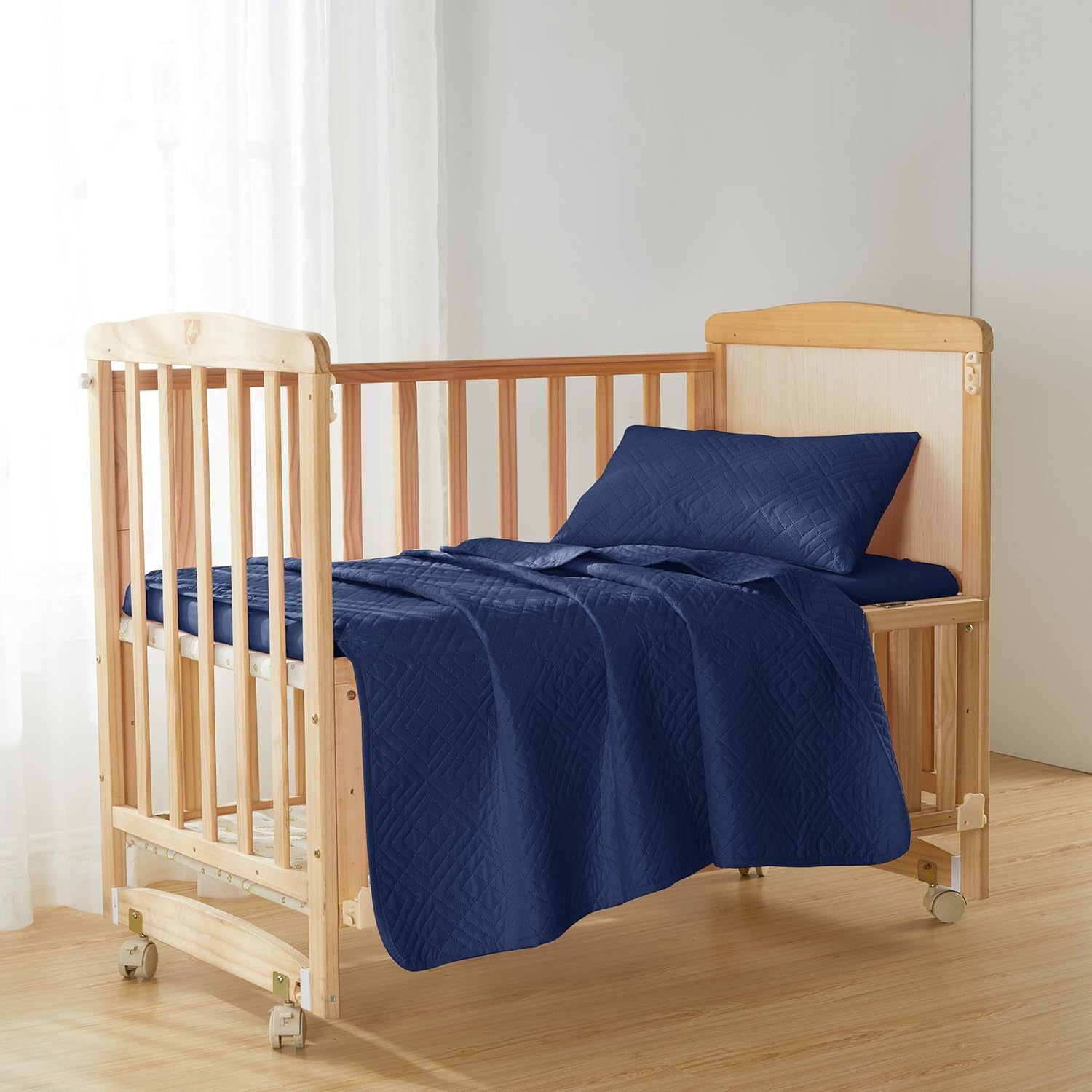 Clara Clark Toddler Bedding Set, Toddler Bedspread, 3PC Set - All Season Quilted Comforter, Fitted Sheet, Pillow Sham.