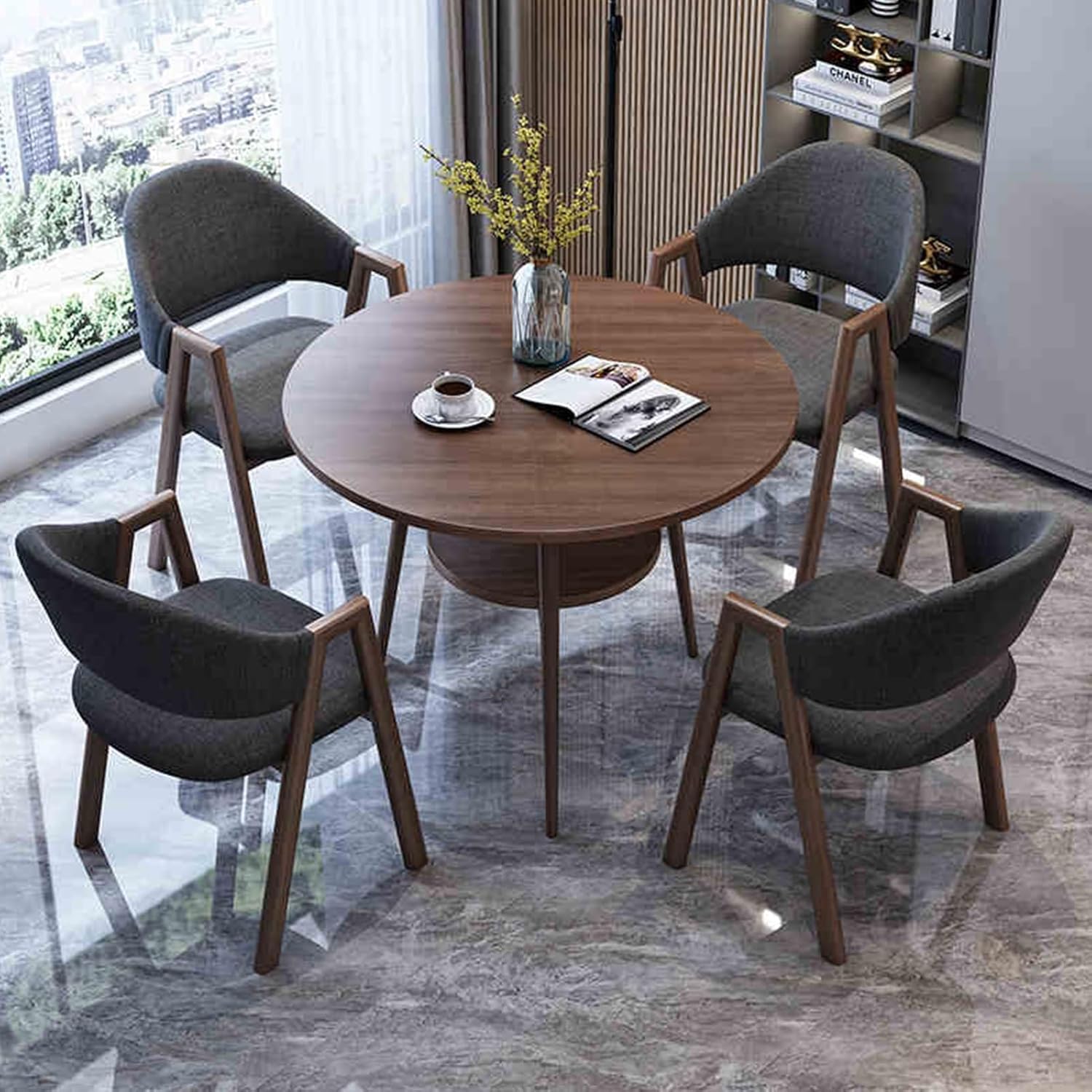 The ergonomically curved seat can protect your spines for long-term seatingMeeting Room Table Chair Set will complement any office or home decorProduct Name: office reception room club table and chair setTable material: E1 grade high density boardTwo Fabrics Available: skin-friendly breathable cotton and linenTable size: diameter 80cm/31.4inPacking: 1x table, 4x chair (other things are decorations, not included)Applicable scenes: office, coffee shop, tea shop, reception, restaurant, library, cinema, clothing store, maternal and child shop, living room, etc.Please note:1. While we display colors as accurately as possible, due to differences in computer monitors, colors may vary.2. Due to manual measurement, there may be an error of 1-3 cm in the product size.