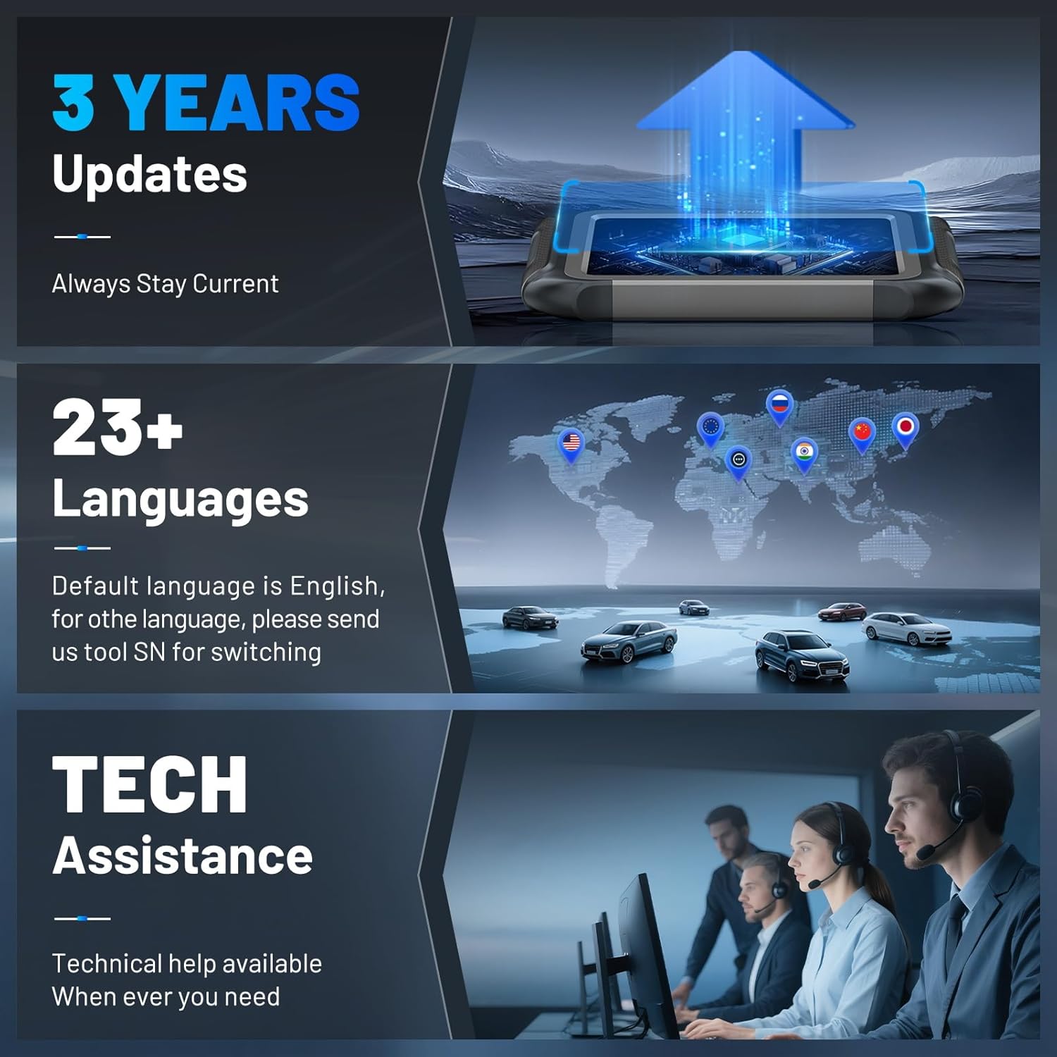 • Full System Diagnostic & 3-Year Free Updates: XTOOL D9S PRO car diagnostic scanner tool gain full access to every vehicle system, including Engine, Transmission, ABS, SRS, BCM, TPMS, and more, delivering dealer-level deep dive. Execute a full diagnostic suite—read/clear codes, view live data, freeze frames, and retrieve ECU info with precision. With 3 years of free updates, XTOOL D9S PRO obd2 scanner for car continuously expands vehicle coverage and improves features via one-touch updates. Invest in a tool that evolves with automotive technology, providing long-term value and high ROI for your workshop